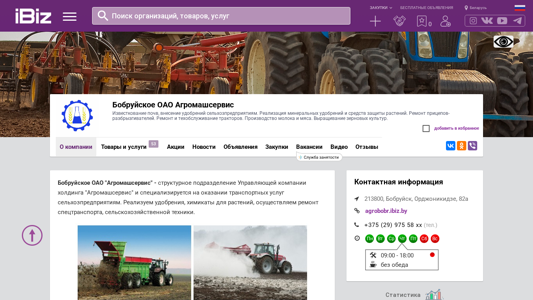 | AI-анализ | This online resource is the official website for Bobruysk OAO Agromashservis, a Belarusian agricultural services company. The company offers soil analysis and fertilization services for agricultural enterprises. It also sells mineral fertilizers and plant protection products, as well as providing repair services for sprayer tanks and tractors. Additionally, the company produces and sells dairy and meat products, and cultivates cereal crops. The website includes a section for job vacancies and company news, as well as a shop for purchasing agricultural products and services. The address for the company is 213800, Bobruysk, Orджоникидзе, 82a. |