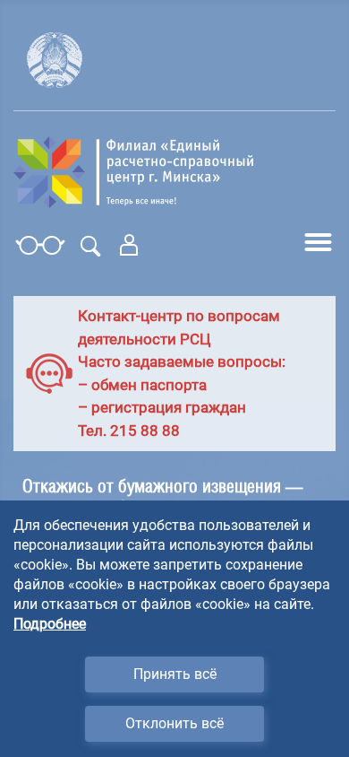 | SEO-описание | Официальный сайт филиала «Единый расчетно-справочный центр г.Минска» коммунального унитарного предприятия «Центр информационных технологий Мингорисполкома», Кон |