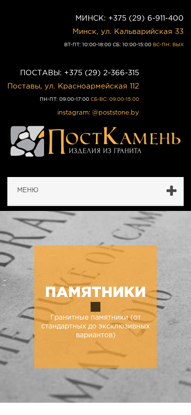 | SEO-описание | Изготовление памятника в Минске от компании ПостКамень ✅ Низкие цены ✅ Пожизненная гарантия на памятник ✅ Собственное производство ☎ Звоните +375 (29) 641-71-83 |