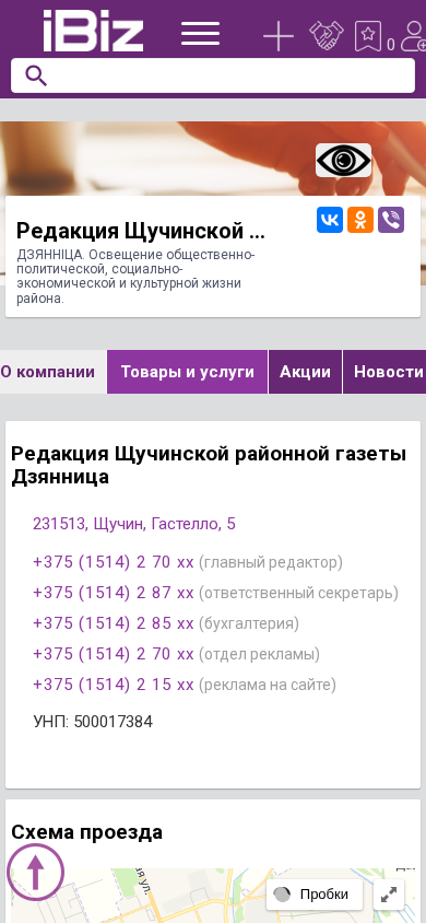 Название / ЗаголовокРедакция Щучинской районной газеты Дзянница - ДЗЯННIЦА. Освещение общественно-политической, социально-экономической и культурной жизни района.. 231513, Щучин, , Гастелло, 5