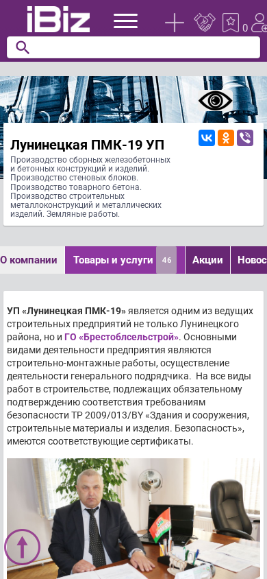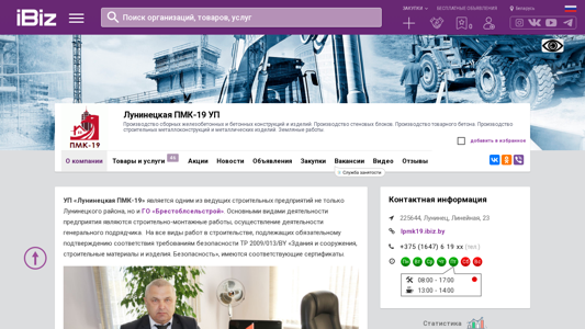 favicon Лунинецкая ПМК-19 УП - Производство сборных железобетонных и бетонных конструкций и изделий. Производство стеновых блоков. Производство товарного бетона. Производство строительных металлоконструкций и металлических изделий. Земляные работы.. 225644, Лунинец, , Линейная, 23