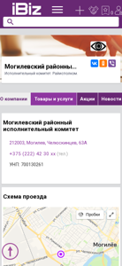 | AI-анализ | The web project "Могилевский районный исполнительный комитет - Исполнительный комитет. Райисполком.." is a local government agency website located at mogilev-raiss.ibiz.by with the physical address 212003, Могилев, Челюскинцев, 63А. The site provides information on the committee's location, contact phone numbers, and services including procurement and announcements. Keywords associated with the site include "услуги" (services), "375" (Belarus country code), "тел" (phone), "исполнительный комитет" (executive committee), "закупки" (procurement), and "объявления" (announcements). The site is categorized under "Органы исполни |