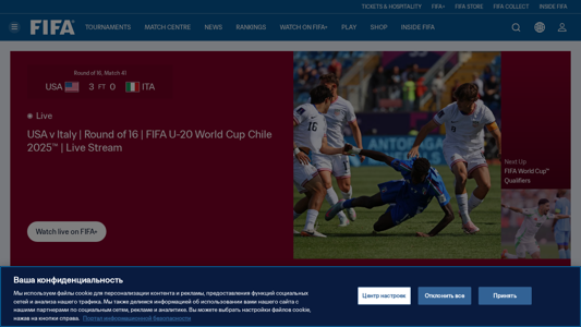| AI-анализ | The web project FIFA | The Home of Football is a comprehensive football platform that brings together the latest news, player exclusives, and live match content for various FIFA tournaments worldwide. The site includes sections for FIFA+, FIFA Store, FIFA Collect Inside, FIFA Search, and various tournament overviews, such as the FIFA World Cup 26™, FIFA Women's World Cup 2027™, FIFA U-20 World Cup 2025, and FIFA U-17 World Cup 2025. Users can access live streams of matches, FIFA+, and the FIFA Rival's game, as well as shop for tickets and hospitality packages, or purchase merchandise from the FIFA Store. The site also features news, rankings, and language options. FIFA's strategic objectives for the 2023–2027 period, organizational campaigns, member associations, reports |