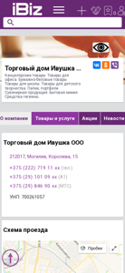 | AI-анализ | The portal td-ivuscka.ibiz.by is an online shop offering various stationery products, office supplies, school supplies, toys for creative activities, paper and white goods, and household chemicals and hygiene items. The company, named Ивушка ООО, is located in Могилев at Королева 15, and their contact information includes phone numbers for А1, МТС, and a landline number. The business hours are from 10:00 to 19:00 from Monday to Thursday, and from 10:00 to 16:00 on Saturdays. The company is listed under the categories 'Канцтовары' and 'Товары для офиса' in the Yandex Business Directory. |