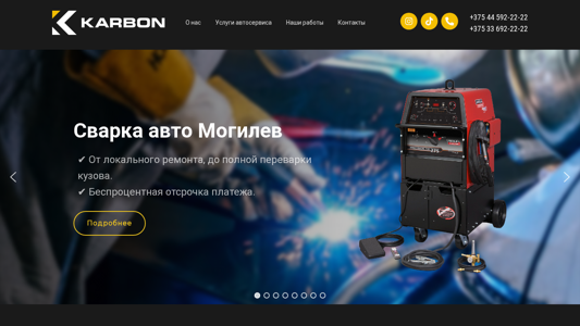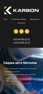 | AI-анализ | --- The portal Karbon.by offers various car services in Mogilev, including auto body repair, electric car repair, and car wrapping. Services range from local repairs to complete bodywork. The business provides a no-interest payment plan and detailed information about their services is available on the website. The car painting service is equipped with a spray booth and guarantees the quality of the result. The car electrics service offers diagnostics and pays the customer if no fault is found. The car body repair includes welding services and the use of protective and polyurethane films to shield the car from scratches and dents. The auto service also provides engine cooling system cleaning and offers a warranty on the work performed. The contact information for the business is listed as +375 44 592-22-22 and +375 33 692-22-2 |