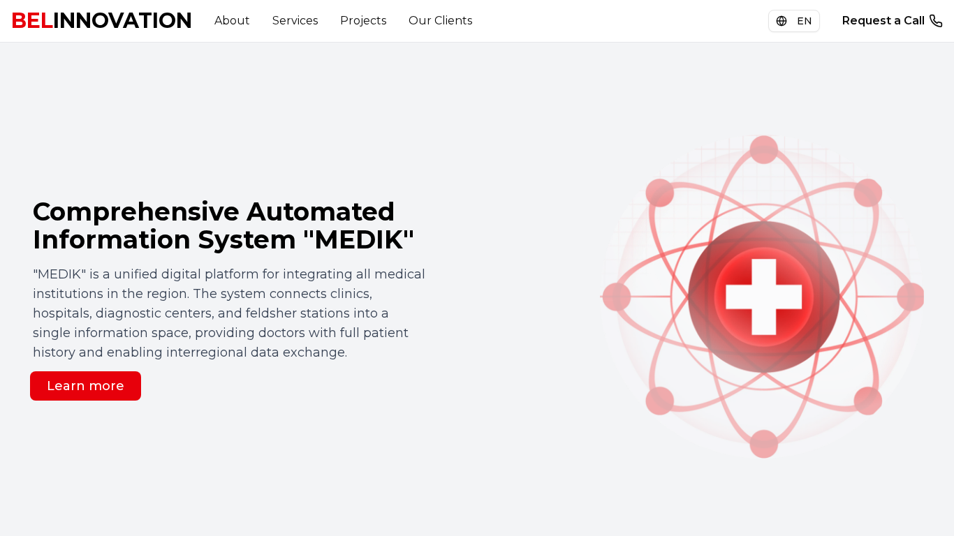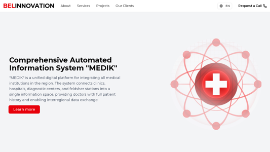 | AI-анализ | The portal Belinnovation.by is a digital solutions provider for the automation of clinics and hospitals in Belarus. It focuses on the implementation, support, and integration of IT systems in the country's healthcare sector. The primary offering is a comprehensive automated information system named "MEDIK," which aims to connect various medical institutions, including clinics, hospitals, diagnostic centers, and feldsher stations, into a single information space. This platform enables doctors to access full patient histories and facilitates interregional data exchange. The company, Belinnovation, was founded in 2012 and offers a full range of services for software development, integration with medical equipment, software adaptation, and ongoing support and maintenance. With over 13 years of successful operation, 239+ satisfied clients, and 1,041+ active users, the company has processed more than 2,0 |