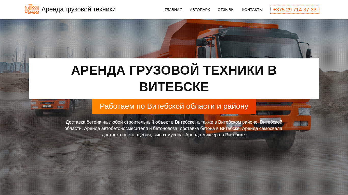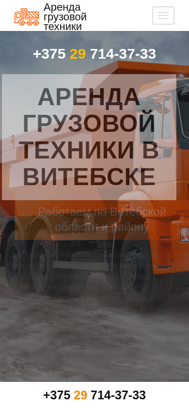 | SEO-описание | Аренда грузовой техники для перевозки сыпучих грузов и бетона по Витебску и области. Заявки по телефону +375 29 714-37-33 |