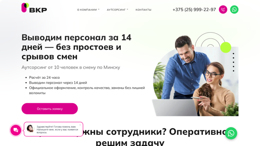 | SEO-описание | Агентство аутсорсинга персонала ВКР в Минске и Республике Беларусь — подбор сотрудников для ритейла, производства, складов и логистики под ваши требования с гарантией. |