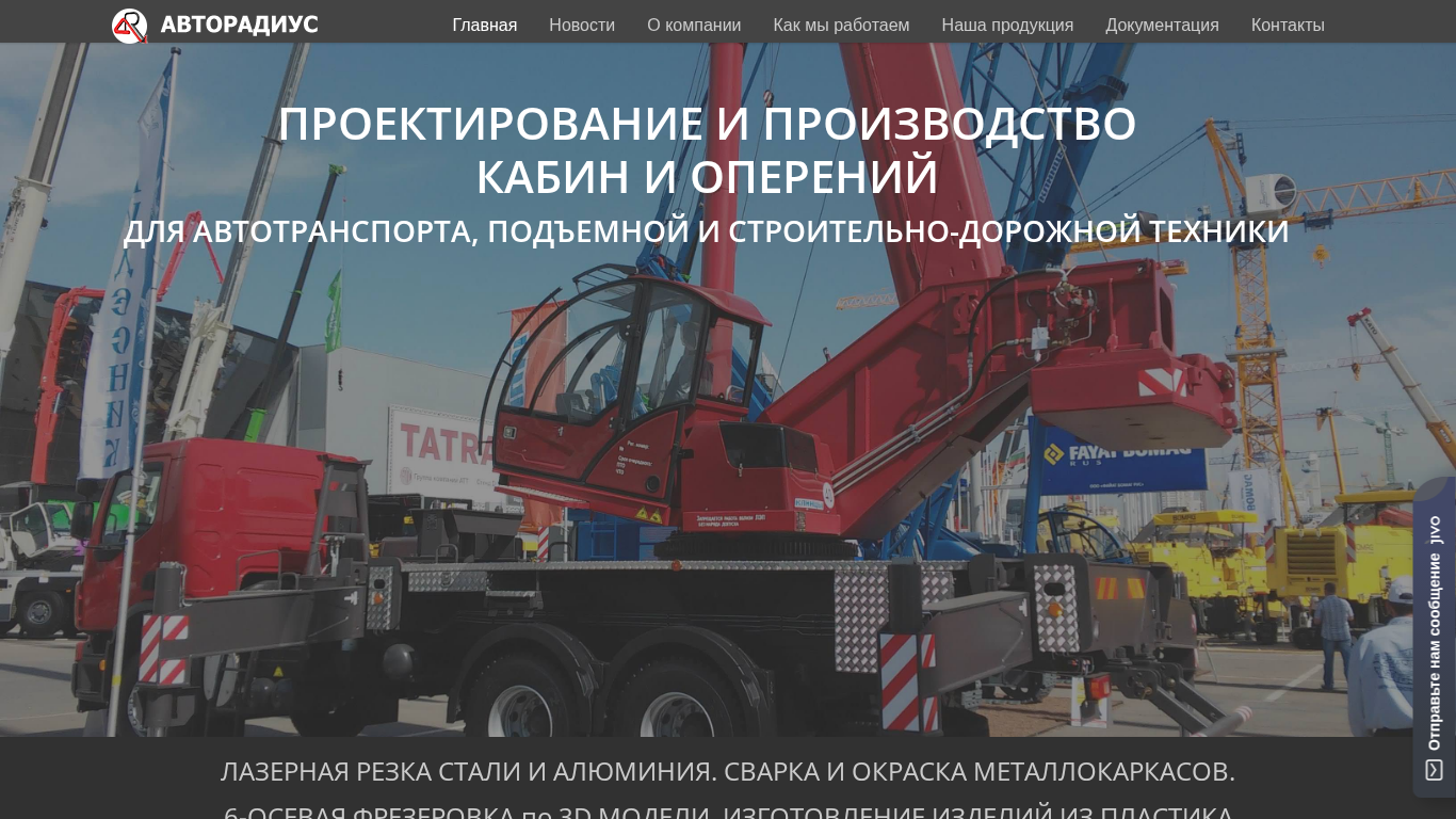 | AI-анализ | language: ru The web project "ОДО "АВТОРАДИУС" | PROJECTING AND MANUFACTURING OF CABINS AND COVERS FOR AUTOTRANSPORT, Lifting and Construction-Road Engineering TECHNOLOGY This website belongs to a leading Belarusian company specializing in the designing and manufacturing of cabins, covers, and other components for automotive transport, lifting, and construction-road engineering technology. The company's integrated project, metalworking, model-forming, experimental, and assembly production facilities enable rapid and high-quality creation of a wide range of products. The organization handles the entire project cycle, from receiving the technical assignment to the technological preparation for serial production. The company's projects are comprehensive solutions based on extensive experience, utilizing modern equipment and the latest technologies and materials. The website provides information about the company |