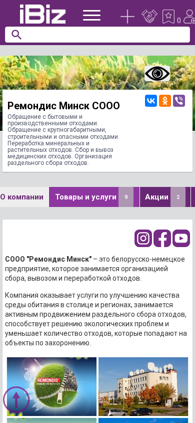 | AI-анализ | The website is a Belarusian business platform for the company "Remondis Minsk SOOO" which deals with the collection, transportation, and processing of various types of waste. The company offers services to improve living conditions in the capital and regions by promoting separate waste collection, addressing ecological issues, and reducing the amount of waste that ends up in landfills. Services include the organization of separate waste collection, removal and disposal of solid household waste, collection and transportation of construction waste and large items, disposal of medical waste, and processing of hazardous waste. The website also features a section for purchasing secondary materials such as gravel and fuel chips, as well as information about the company and its activities. The domain name is remondis.ibiz.by. |