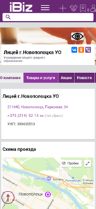 | AI-анализ | The website is a educational institution named "Licey g. Novopolotsk UO - Uchrezhdenie obshchego srednego obrazovaniya.." located at 211440, Novopolotsk, Parnasovskaya, 34 in Belarus. It provides information about the company, its location, contact details including phone numbers and fax, business hours, and a map with a scheme of how to get there. The website also features a section for announcements, news, vacancies, and videos. The company is listed under the categories of colleges, technical schools, and lyceums. The contact information is displayed at the top of the page and the website is operated by OOO "AIBIZ MEDIA" - a catalog of businesses and organizations in Belarus. |