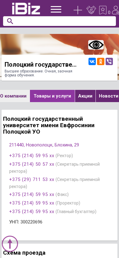 | Название / Заголовок | Полоцкий государственный университет имени Евфросинии Полоцкой УО - Высшее образование. Очная, заочная форма обучения.. 211440, Новополоцк, , Блохина, 29 |