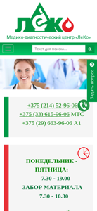 | SEO-описание | Медико-диагностический центр «ЛеКо». Лабораторная диагностика, ультразвуковая диагностика, эндокринология, терапия, урология, андрология, неврология в Новополоцке |