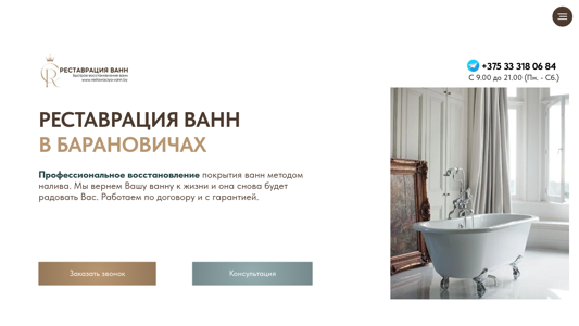 | SEO-описание | Профессиональная реставрация ванн в Барановичах. Лучшие цены ! Срок эксплуатации акрила до 20 лет. Договор , гарантия |
