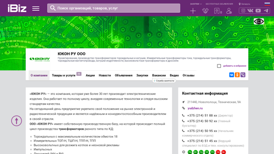 | AI-анализ | --- The portal yudzhen.ibiz.by is dedicated to the manufacturing and design of various types of transformers and coils. The company offers toroidal transformers and inductor coils, current transformers, magnetic probes, high-voltage transformers, and impulse drossels. The website provides contact information and location details for OOO "ЮКОН РУ" in Novopolotsk, Belarus. The company specializes in the production of electrotechnical products and offers a full range of services, including project development, prototype creation, and customer support. The website includes sections for news, vacancies, and customer reviews. |