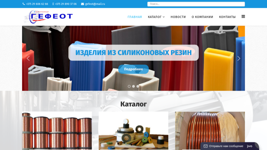 | AI-анализ | This website is a Belarusian business-to-business platform specializing in the sale of electrical insulation materials, specifically enameled wires and cables. The company, named ООО «ГЕФЕОТ», was established in 1996 and is headquartered in Novopolotsk, Belarus. The business operates two warehouses, one in Novopolotsk and another in Minsk. The main focus of the company's activities is the procurement and sale of enameled wires and electrical insulation materials. The company has a repair and maintenance shop for electrical equipment. Since 2010, the company has expanded its production capabilities to include the manufacture of TKR tubing, silicone profiles, and from 2016, it produces ASCH, SHES, SHCPP; basalt and cremneze |