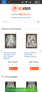 | AI-анализ | The portal BelCover is an online shop based in Minsk, Belarus, specializing in selling various types and designs of carpets and rugs. The extensive catalog includes over 300 designs of carpets in various sizes and colors, with a promise of high-quality products. The shop offers a wide selection of carpets, including round, oval, square, and rectangular ones, made of materials such as polypropylene, acrylic, and natural fibers. There are also children's carpets and large-sized carpets available. Additionally, the shop provides carpet runners and palas, as well as accessories for carpets. The website includes a catalog of carpets, runners, and palas, with producers such as OAO "Vitebskie Kovry" and OAO "Kovry Bresta |