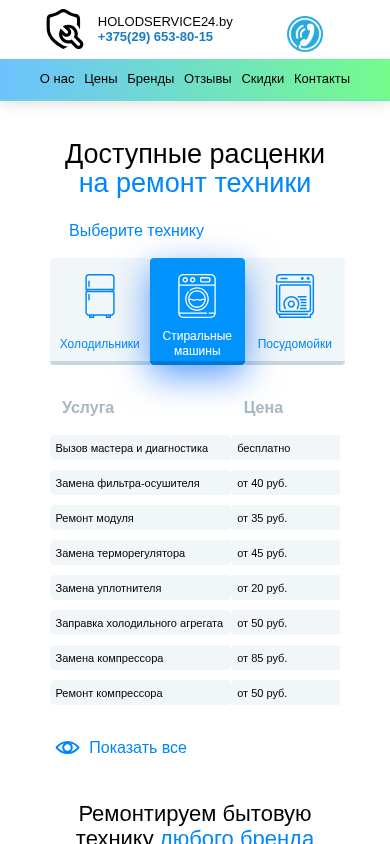 | SEO-описание | Профессиональный ремонт холодильников и бытовой техники в Минске на дому с гарантией до 36 месяцев. Ремонтируем любые модели. Звоните! |