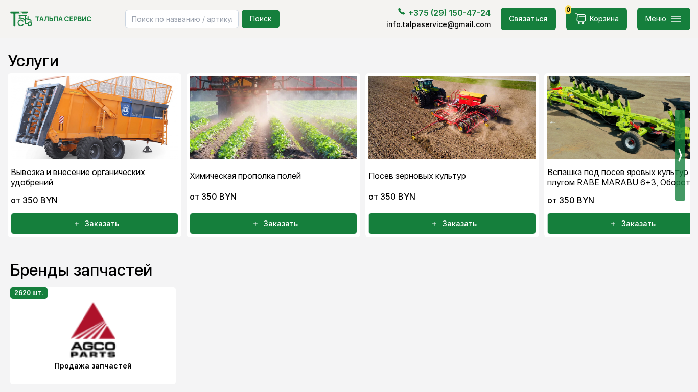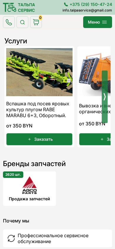 | SEO-описание | Профессиональное сервисное обслуживание сельскохозяйственной техники | Качественные запчасти для тракторов | Ремонт любой сложности | Гарантия надежности работы | Звоните +375 (29) 150-47-24 |