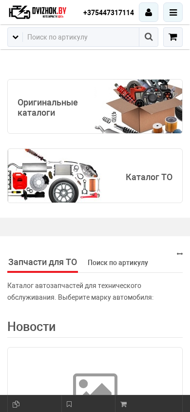 | AI-анализ | The web project 'dvizhok.by' is an e-commerce website selling auto parts. The homepage includes sections for catalogs, customer orders, balances, information, and contact details. Users can browse original catalogs for various auto brands, search for parts using article numbers or names, and view news and company information. The site also provides options for registration, login, and customer support. The business is located in Goemel, Belarus, and operates Monday to Saturday from 9:00 to 18:00, and on Sundays, it is closed. The contact information includes a phone number and email address. |