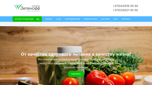 | AI-анализ | ---  The web project Zelenoff.by is an e-commerce platform selling various types of green produce including microgreens, salads, lettuce, and edible flowers. The homepage features information about the company, its partnerships, and product categories such as 'Microgreens', 'Salad', and 'Edible Flowers'. The products are displayed with their respective prices and quantities, and the user can access a cart for checking out. The site also includes sections for 'Documentation', 'Scientific Research', 'Recipes', 'FAQs', 'Testimonials', 'Delivery', and 'Blog'. The company offers two phone numbers for customer inquiries and does not have any products in the cart upon visiting. The site's slogan is 'From the quality of healthy food to the quality of life!' and it aims to revolutionize the food industry by providing eco |