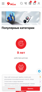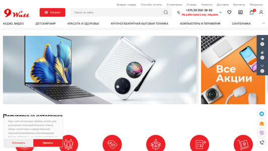 | AI-анализ | The web project 9watt.by is an e-commerce website selling household appliances, electronics, items for cottages and homes. The site offers a shopping cart for placing orders, with options to view and compare items, and a list of favored products for future purchase. The site uses cookies for user experience improvement and statistics collection, and presents personalized recommendations. The catalog includes categories for audio, video, children's items, beauty and health, large household appliances, computers, peripherals, plumbing, items for the garden, tools, home tech, kitchen appliances, cars and motors, accessories, furniture, climate control tech, and sales. Popular categories include audio, video, and kids. The contact information, delivery details, and company background are also provided. |