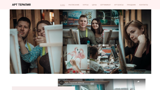 | AI-анализ | This website is for an art therapy studio named "Арт Терапия" located in Minsk, Belarus. It offers master classes for individuals with no drawing experience. The studio provides a personalized approach to help guests create quality artwork. The site includes information about classes, pricing, certificates, and art boxes. Users can choose a technique, sign up for a class, and attend the session where they will be provided with tea and pastries. The studio also offers a selection of art materials for sale. The website is registered under IP number 692137155 and contact information includes a phone number and email address. |