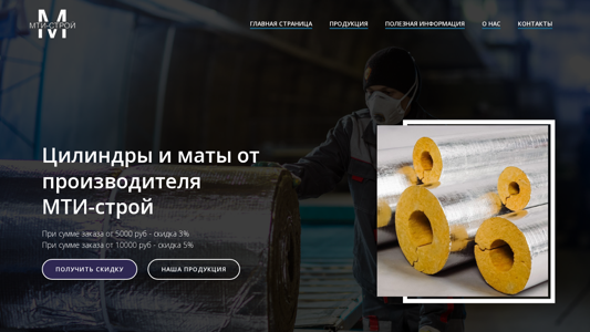 | AI-анализ | The portal MTI-стой is a production site for thermal insulation. It offers various thermal insulation and anti-condensation products for different technological piping systems, internal and external heating and water supply. The products include lightweight and durable items made of mineral wool on a synthetic binder. The website features information on cylindrical and mat insulation, their specifications and advantages, such as lightweight, easy installation, high thermal conductivity, long service life, high strength, and reusability, with no fear of temperature fluctuations. The insulation cylinders and half-cylinders come in various internal diameters, from 22 mm to 219 mm, with insulation thicknesses ranging from 10 mm to 120 mm, and can be covered with glass fiber, foil, or any other material as per the client's preference. The insulation mats |