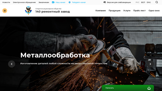 | AI-анализ | The website is for ОАО "140 ремонтный завод," a Belarusian company that offers a wide range of products and services for civil use. With over 25 years of experience on the international market, they provide a modern production facility and quick turnaround times for orders. The company offers metalworking services, including the manufacture of non-standard equipment and fittings, as well as cable and rubber product production, and wooden packaging with sanitary treatment. They also offer sewing services and have a price list available. The website includes sections for company information, administrative procedures, contacts, and an open door policy for citizen and business inquiries. The company operates in Borisov, Belarus, and can be reached at +375 177 74-64-64 or +375 177 74-79- |