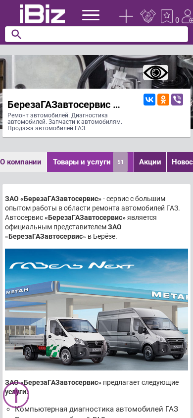| Название / Заголовок | БерезаГАЗавтосервис ЗАО - Ремонт автомобилей. Диагностика автомобилей. Запчасти к автомобилям. Продажа автомобилей ГАЗ.. 225209, Береза, , Армейский пер., 7 |