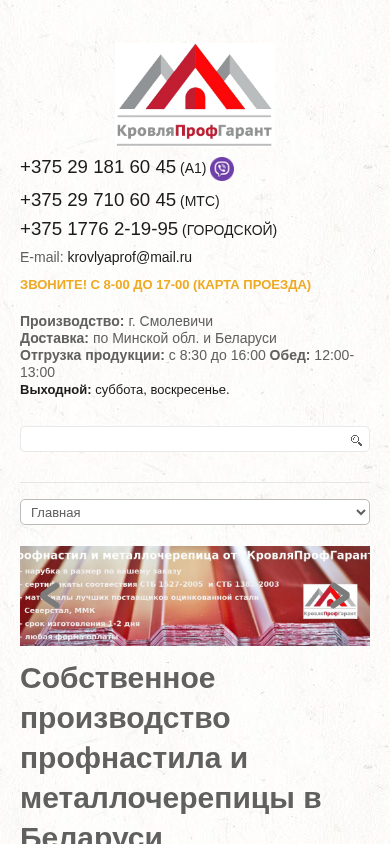 | SEO-описание | Собственное производство профнастила, металлочерепицы, металлопрофиля, доставка по Минску и Минской области. Оптом и в розницу, наличный безналичный расчет. Гарантия качества. Лучшие цены в Беларуси. |