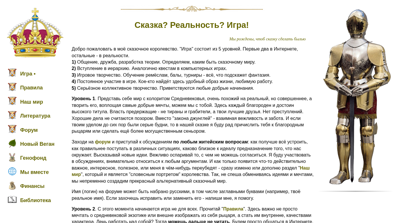 | AI-анализ | The web project "Игра" (Game in English) is a unique social platform where users can collaboratively build an imaginary world with a Middle Ages aesthetic, superior to the real one, but where everyone can bring their best dreams to life. This interactive community consists of five levels: 1) communication, friendship, and theory development; 2) entry into the hierarchy; 3) creative endeavors, skills, points, and tournaments; 4) constant participation; and 5) serious collective creativity. The first level is an online environment where users can discuss various aspects of life and create a more ideal world. The project encourages kindness, respect, and mutual help. The second level involves ascending the social hierarchy, similar to quests in computer games. The third level focuses on artistic expression, craftsmanship, and rewards. The fourth level is about finding a fulfilling lifestyle and occupation. Lastly, |