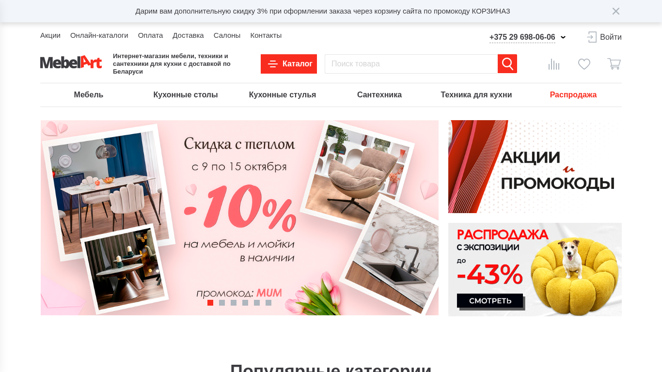 | SEO-описание | Мебель в Минске. MebelArt.by - эксклюзивный импортер крупных европейских брендов. У нас актуальные цены, рассрочка платежа, доставка по Минску и Беларуси. ☎️ +375- 29-698-06-06 |