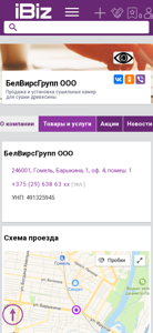 This online resource is dedicated to BelVirсGрупп ООО, a company based in Belarus, specifically located in Goмель at Барыкина, 1, оф. 4, помеш. 1. The company specializes in the sale and installation of drying chambers for drying wood. The contact details, including a phone number starting with '375 29' and the Unified State Register number '491325945', are provided. The opening hours are mentioned as Monday to Friday from 9:00 to 18:00, with no breaks for lunch. The company's offerings fall under the categories of 'Деревообработка, оборудование' (wood processing, equipment) in the Yandex business catalog.