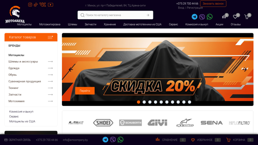 | AI-анализ | The website MoroArena is a motorcycle shop located in Minsk, Belarus. It offers motorcycles, spare parts, equipment, and accessories for sale. The business specializes in importing motorcycles from the United States and provides financing through the Halva card. Customers can choose between pick-up and delivery within Belarus. The shop is located at ul. pr-t Poбедителей, 84, in the Arena-city shopping center, and can be reached at the phone number +375 29 700 44 66. The website features a catalog of various motorcycle brands, including clothing, helmets, and accessories. Some items are available for sale at discounted prices. |