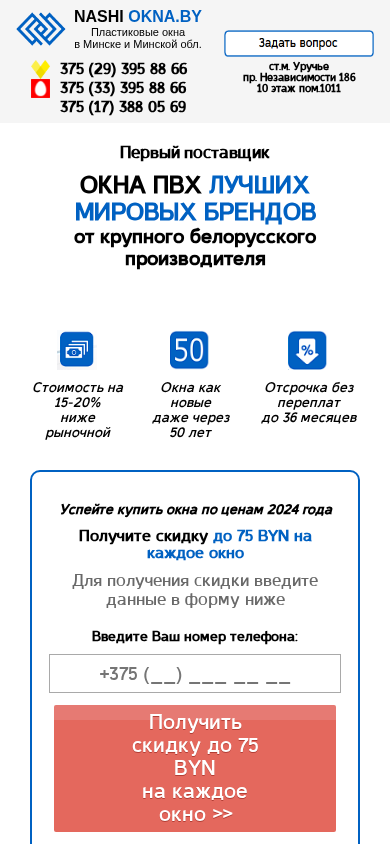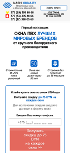 SEO-описание | Белорусский производитель пластиковых окон. Работаем только с лучшими профилями: Rehau, KBE, Brusbox. Успейте получить скидку до 75 BYN на каждое окно, переходите на сайт! |