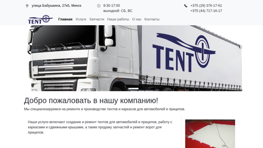 SEO-лексика | прицепов 375 главная ремонт тентов автомобилей услуги наши работы нас улица бабушкина 27к5 минск 376-17-61 717-16-17 запчасти контакты телефон интертентсервис |