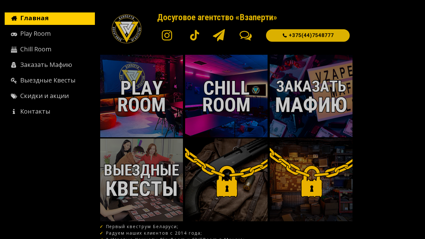 | Название / Заголовок | Игровые комнаты и Мафия в Минске | Взаперти |