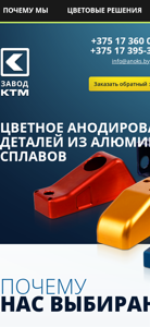 | AI-анализ | --- The website is titled "Анодирование" (Anodizing) and offers colored anodizing of aluminum details with delivery throughout Russia. The site accepts orders around the clock and boasts quick turnaround times, a free sample, and an on-site lab for color selection. Additional services include galvanizing of details. The site features a large selection of colors and offers thickness options in 5mkm, 10mkm, 15mkm, 20mkm, and 25mkm, with a custom option available in comments. Users can attach a drawing and contact the company for a quote. The site highlights the company's modern automated galvanic line, fast turnaround times, delivery across Belarus, and fair pricing. The company also offers mechanical detail processing and a lab for analysis and adjustment of anodizing regimes, as well as experienced technologists |