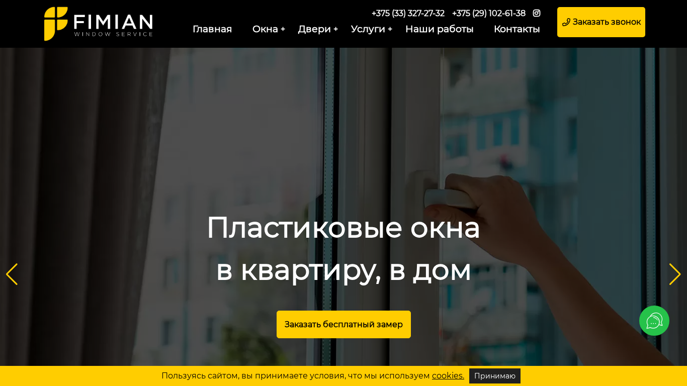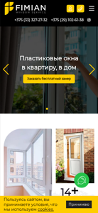 | AI-анализ | --- The web project "Fimian.by" is a window and door manufacturing company specializing in PVC products. The company offers windows and doors at low prices with free measurement, delivery, and installation services. They also provide financing options. The website includes sections for various types of windows and doors for different applications, such as apartments, private homes, and cottages. The company offers services like window pane replacement, balcony railing installation, and custom work. The website provides information on their experience, benefits of their PVC windows, and contact details. The domain name is "fimian.by". |