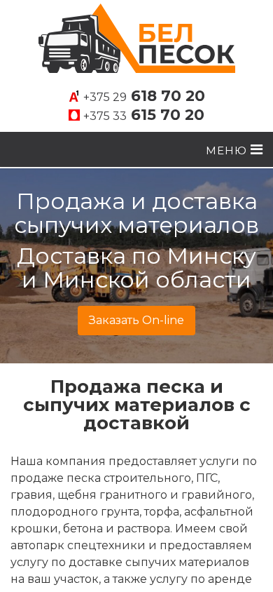 | SEO-описание | Продажа и доставка сыпучих материалов доставка по Минску и Минской области, низкие цены и высокое качество материала |