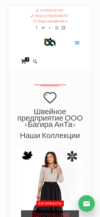 | AI-анализ | The website "BagiraAnTa.by" is a clothing company named "Bagira AnTa," which has been in business since 2000. The company targets women who value ideal cuts and high-quality clothing. The website provides information about various collections, such as fall-winter 2025, spring-summer 2025, fall-winter 2024, and spring 2024. Some of the most popular models include dresses M-1071 and M-1070, as well as women's costumes M-1067 and M-1065. The company is open to new partnerships with wholesale representatives in Belarus, Russia, and CIS countries. The contact information for the company is provided, including a phone number, Viber, and email address. The website is built |