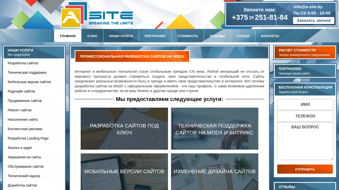 Разработка сайтов в Минске. Выгодные цены по созданию сайтов на ModX (Модекс)| УНП | 192137309 |