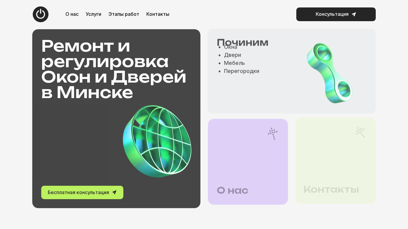 | AI-анализ | The portal DoorService.by offers window and door repair and regulation services, as well as furniture assembly. It also provides replacement of hinges, handles, and locks, and installation of smart locks, among others. The service is suitable for apartment owners. Repairs of leaking windows, doors, and faucets are among the common jobs carried out by the team, which has been operating for over 10 years. DoorService.by boasts a team of skilled professionals, including Anton Samoylov, Rinat Safyanov, Evgeny Maksimov, Tatiana Ivanova, and Anton, who offer on-site, remote, and factory repairs. The website lists various repair services for doors, windows, furniture, and electronics, with estimated prices and timeframes. |