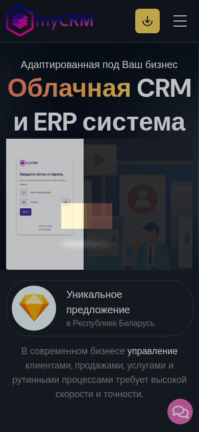 | AI-анализ | --- This website is for a Belarusian business offering CRM and ERP systems tailored to clients' needs. The title is "myCRM — Создание CRM и ERP-систем с учетом ваших потребностей" (Creating CRM and ERP systems according to your needs). The description mentions the development and implementation of CRM and ERP systems under contract. The website offers individual solutions, automation, integration, and easy control of processes. Keywords include 'crm', 'mycrm', 'under your needs', 'erp', 'clients', 'system', 'integration', 'company', 'automation', and 'time'. The website has received positive reviews and is accessible from anywhere in the world, with all data stored in the cloud. The company has been successfully operating for three years and offers a unique proposition in Belarus. In |