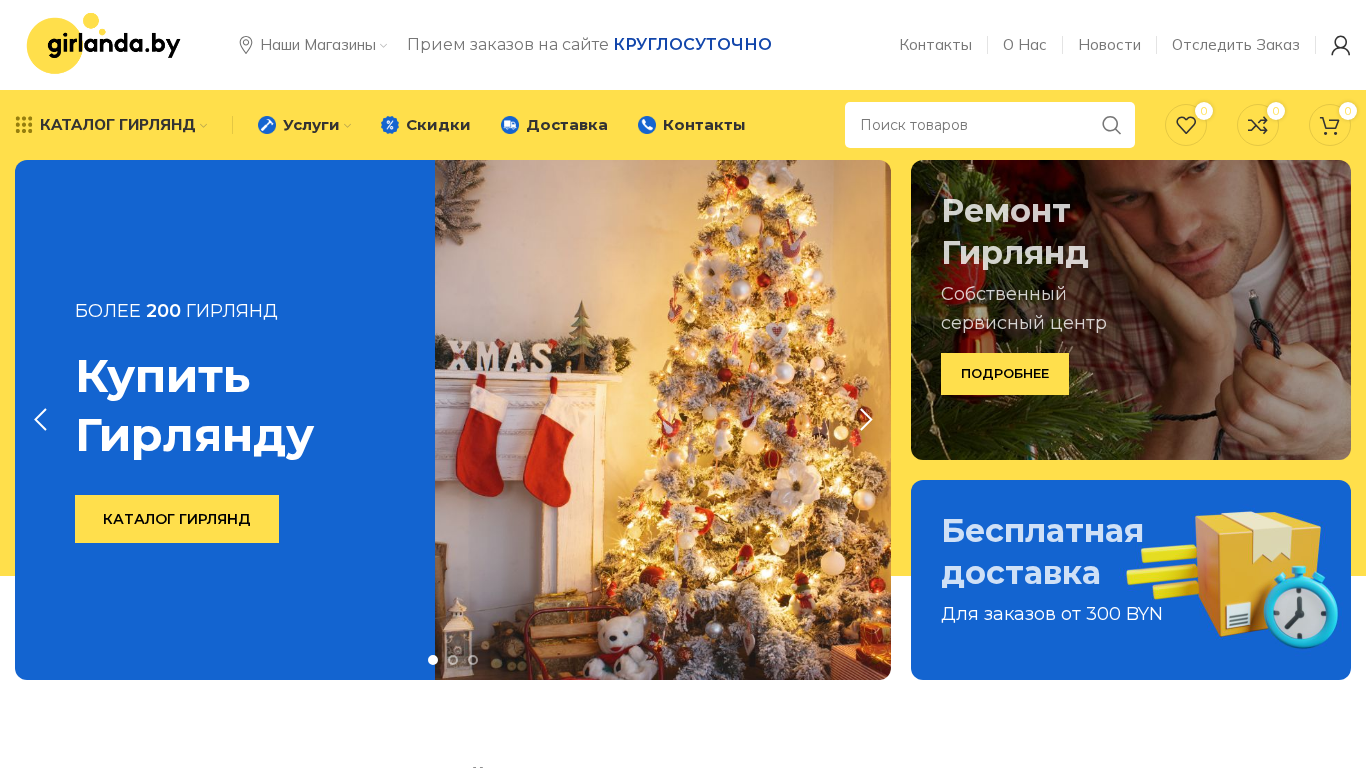| SEO-описание | Купить гирлянду на Гирлянда бай. Официальный магазин гирлянд в Беларуси. Гарантия на гирлянды. Оптом и в розницу. |