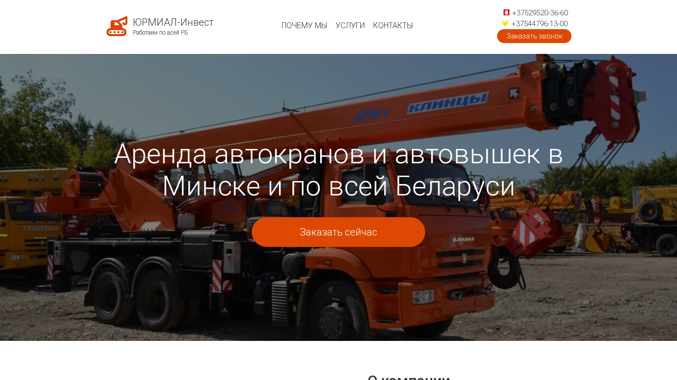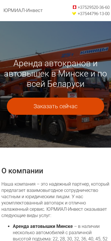| Название / Заголовок | ЮРМИАЛ-Инвест - Аренда автокранов и автовышек в Минске и по всей Беларуси |