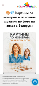 | AI-анализ | --- This website is an e-commerce platform for custom painting and photo mosaic services based in Belarus. The site offers the creation of custom paintings and mosaics using individual photos, with a focus on quick delivery across Belarus. The top words in the metadata suggest that 'photo', 'order', 'paintings', 'almaznya mosaika', and 'number' are the most frequently used terms on the site. The site includes sections for catalog, payment and delivery information, and customer reviews. The business is a private trading company named 'Aytvaras', registered in 2011, and operates an online store at colormagic.by, with orders accepted 24/7 and operating hours from 9am to 10pm daily. The site offers various payment and delivery options, including cash on delivery, E-POS, and self-pickup in the |