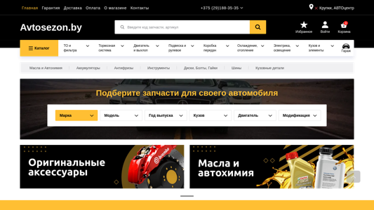 | AI-анализ | The web project avtosezon.by is an online auto parts store. The website offers a shopping cart, a company section, and a catalog. The top keywords for this project include 'corзину' (cart), 'наличии' (availability), 'купить' (buy), 'цены' (prices), 'iclassfafacheckcircleoariahiddentruei' (unclear), 'складе' (stock), 'узнать' (find out), 'снижении' (discounts), 'нашли' (found), 'дешевле' (cheaper), 'клик' (click), 'авто' (car), 'все' (all), '375' (Belarus country code), '188-35-35' (phone number), 'товара' ( |