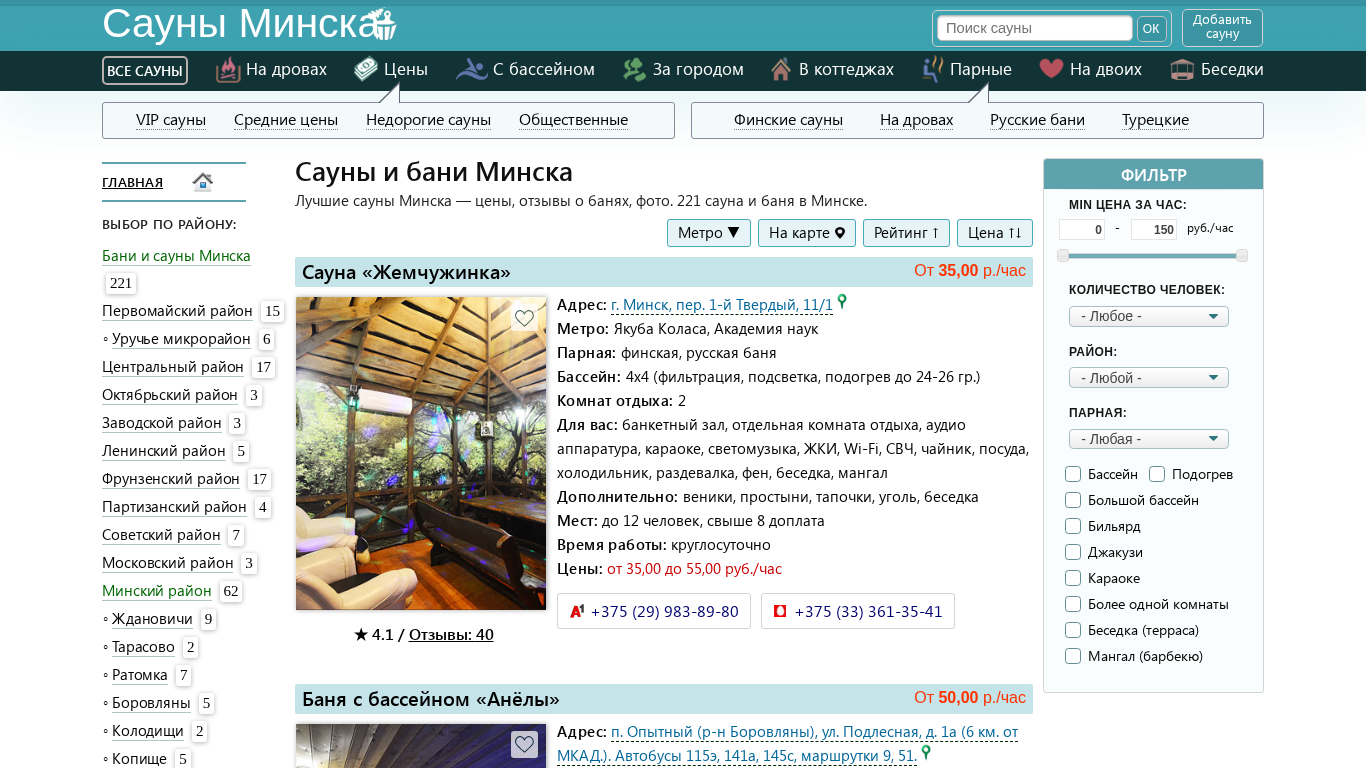 | Название / Заголовок | Сауны Минска – 221 сауна и баня с ценами, фото, отзывами |